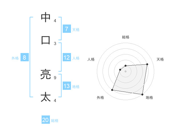 中口 亮太さんの外格は8画の4点!
