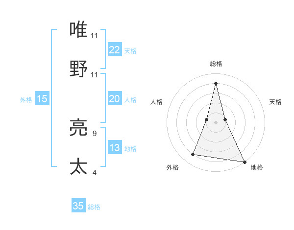 唯野 亮太さんを姓名の画数から五運を鑑定