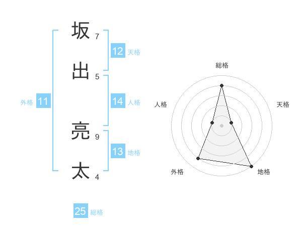 坂出 亮太さんの総格は25画の4点!