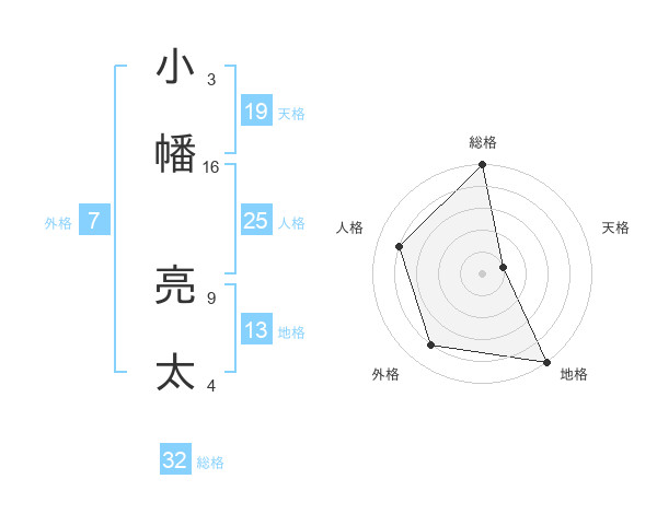 小幡 亮太さんの総格は32画の5点!