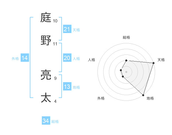 庭野 亮太さんを姓名の画数から五運を鑑定