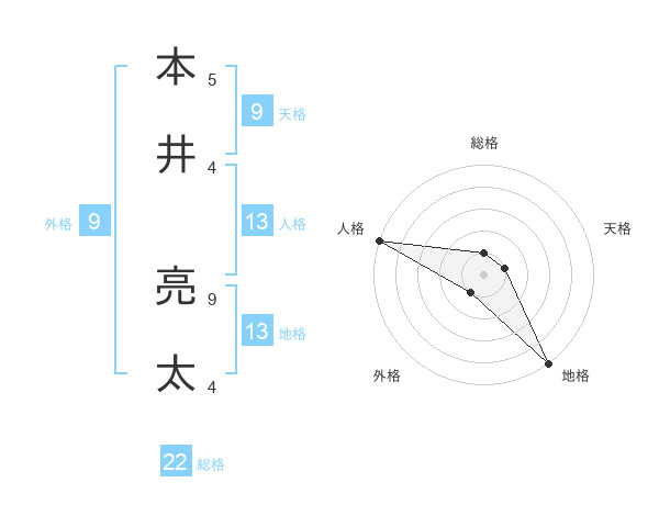 本井 亮太さんの総格は22画の1点!