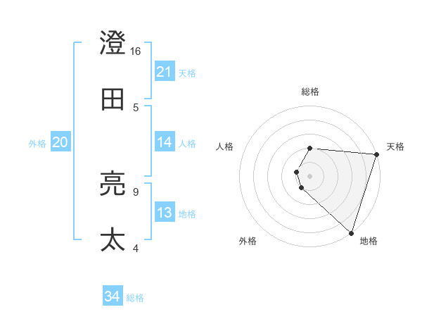 澄田 亮太さんの天格は21画の5点!
