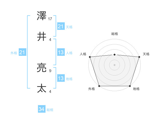 澤井 亮太さんの天格は21画の5点!