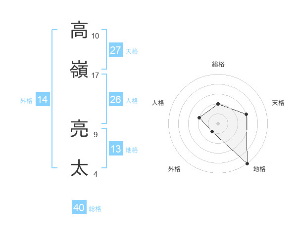 高嶺 亮太さんを姓名の画数から五運を鑑定