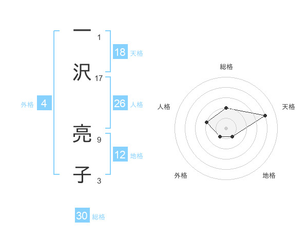 一沢 亮子さんを姓名の画数から五運を鑑定