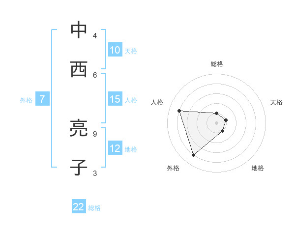中西 亮子さんの総格は22画の1点!