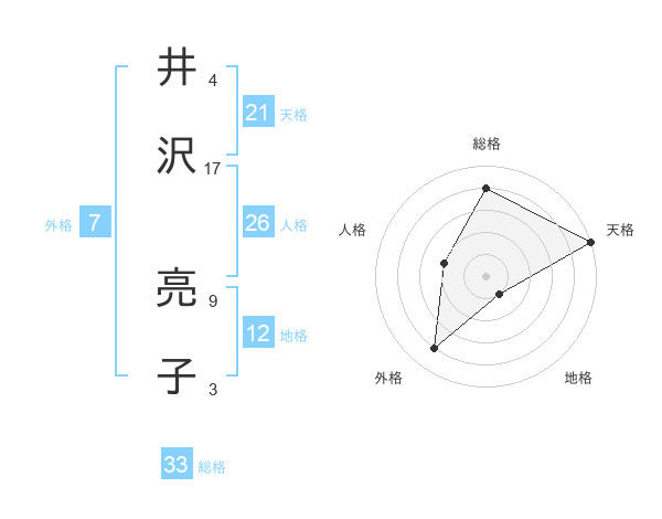 井沢 亮子さんを姓名の画数から五運を鑑定