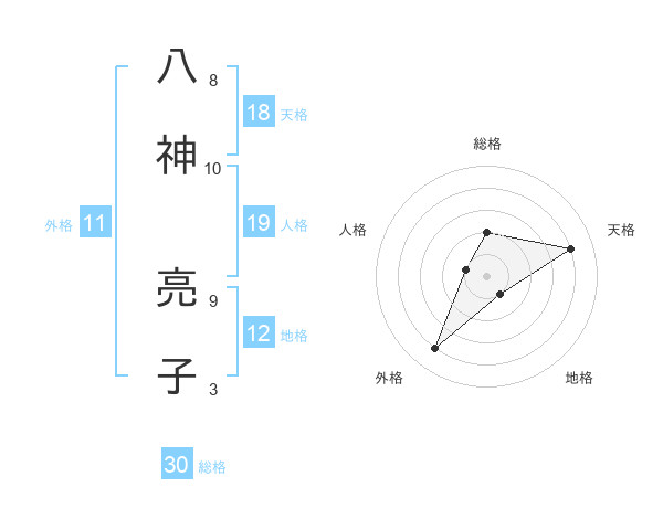 八神 亮子さんの天格は18画の4点!