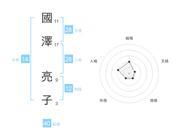 國澤 亮子さんを姓名の画数から五運を鑑定