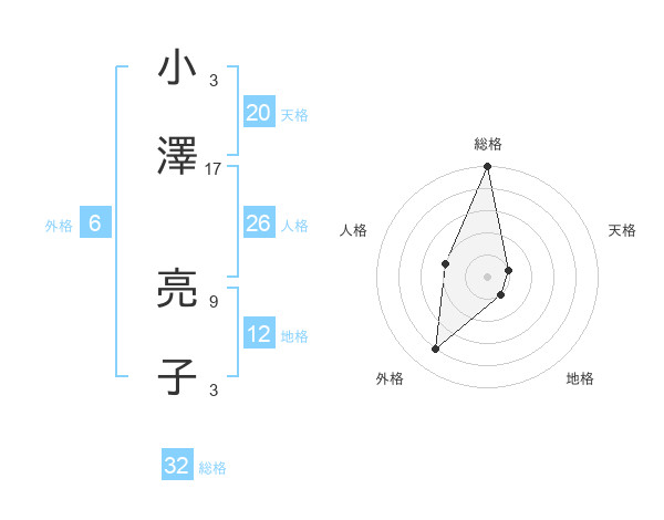 小澤 亮子さんを姓名の画数から五運を鑑定