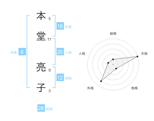 本堂 亮子さんを姓名の画数から五運を鑑定