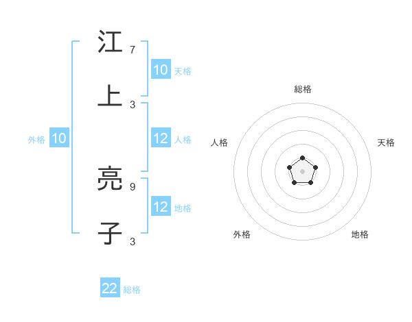 江上 亮子さんの総格は22画の1点!