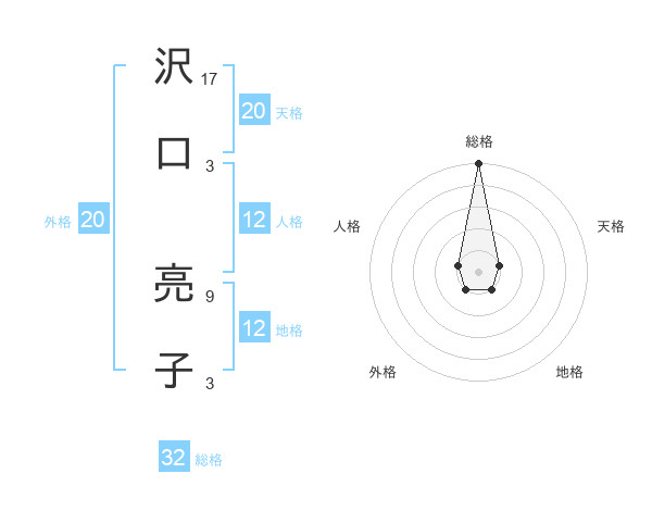 沢口 亮子さんの天格は20画の1点!