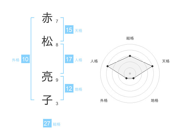 赤松 亮子さんの総格は27画の3点!