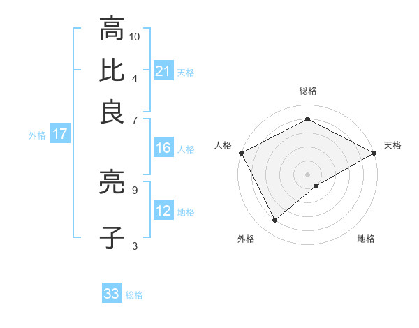 高比良 亮子さんを姓名の画数から五運を鑑定