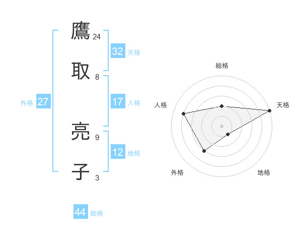 鷹取 亮子さんの天格は32画の5点!