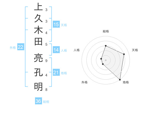 上久木田 亮孔明さんを姓名の画数から五運を鑑定