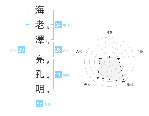 海老澤 亮孔明さんを姓名の画数から五運を鑑定