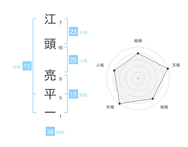 江頭 亮平一さんを姓名の画数から五運を鑑定