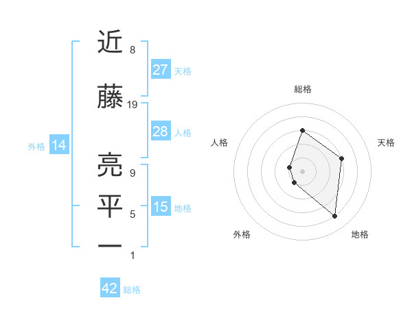 近藤 亮平一さんの総格は42画の3点!