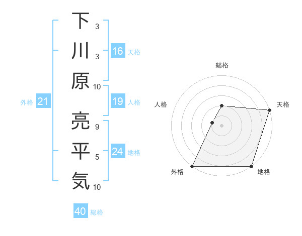 下川原 亮平気さんを姓名の画数から五運を鑑定