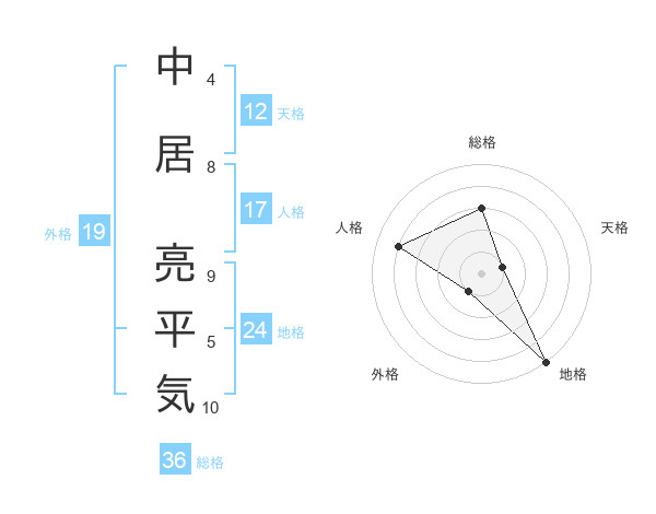 中居 亮平気さんを姓名の画数から五運を鑑定