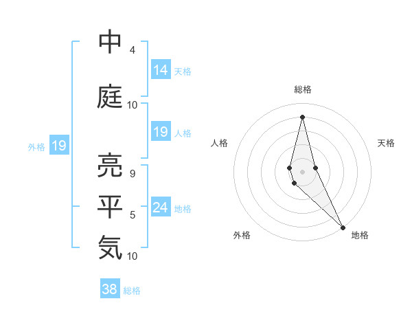中庭 亮平気さんを姓名の画数から五運を鑑定