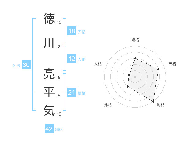 徳川 亮平気さんを姓名の画数から五運を鑑定