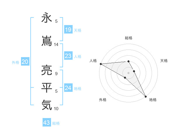 永嶌 亮平気さんを姓名の画数から五運を鑑定