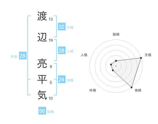 渡辺 亮平気さんを姓名の画数から五運を鑑定