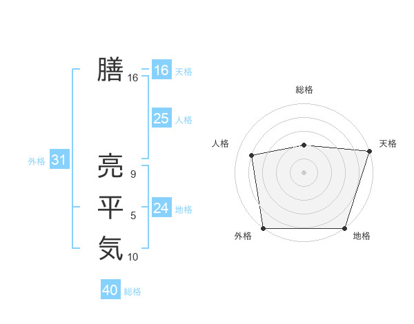 膳 亮平気さんを姓名の画数から五運を鑑定