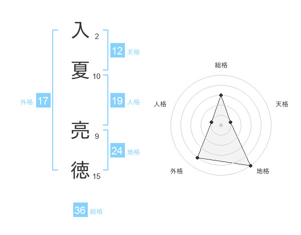 入夏 亮徳さんを姓名の画数から五運を鑑定