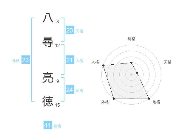 八尋 亮徳さんの総格は44画の2点!