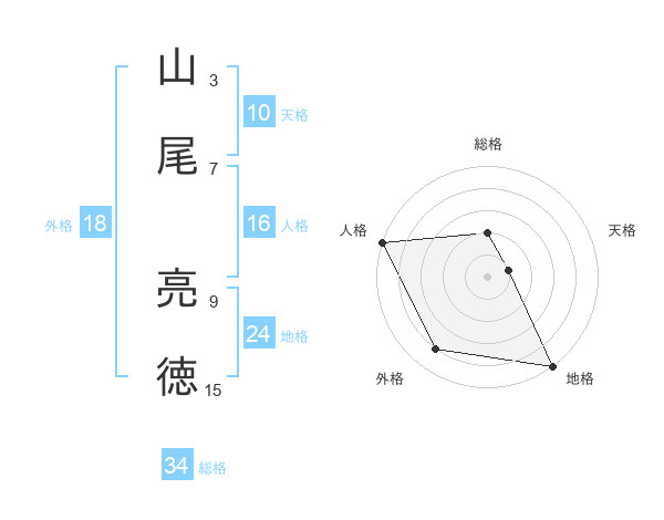 山尾 亮徳さんを姓名の画数から五運を鑑定