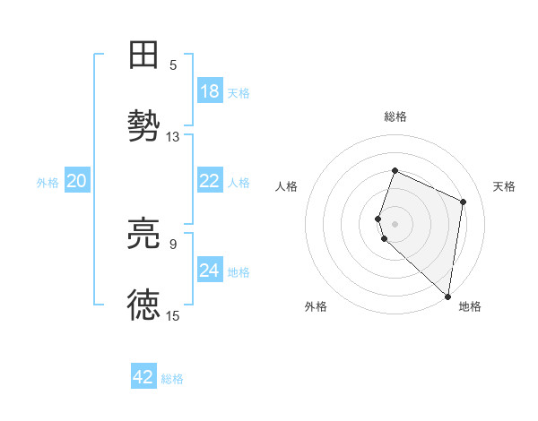 田勢 亮徳さんの総格は42画の3点!