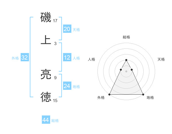 磯上 亮徳さんを姓名の画数から五運を鑑定