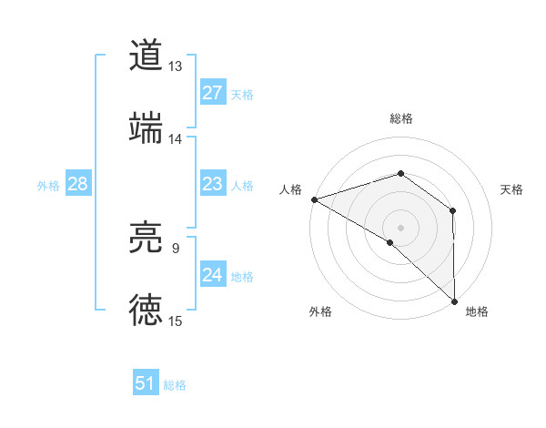 道端 亮徳さんを姓名の画数から五運を鑑定