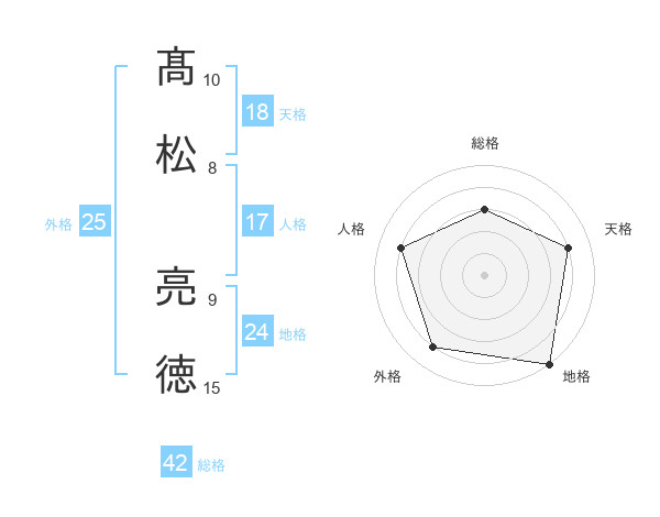 髙松 亮徳さんの地格は24画の5点!