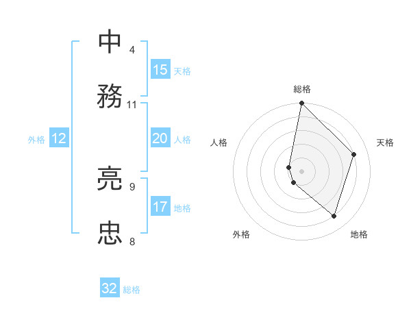 中務 亮忠さんを姓名の画数から五運を鑑定