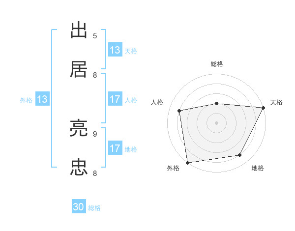 出居 亮忠さんの天格は13画の5点!