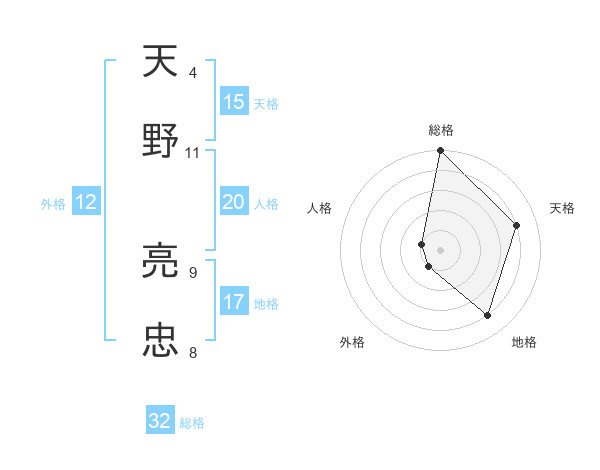 天野 亮忠さんを姓名の画数から五運を鑑定