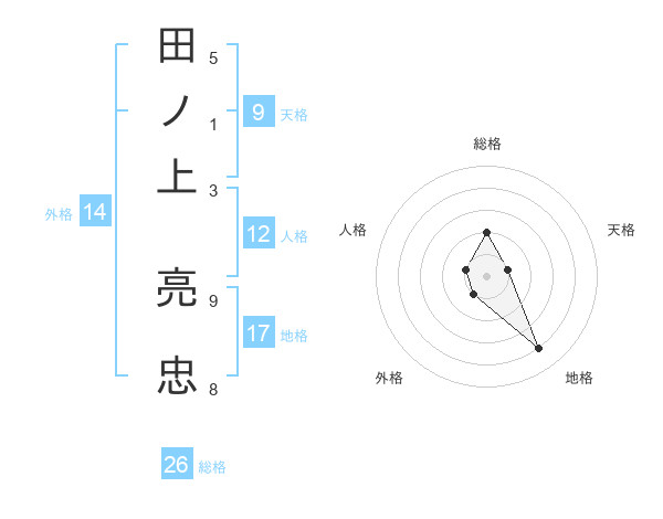 田ノ上 亮忠さんを姓名の画数から五運を鑑定