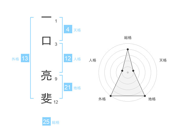 一口 亮斐さんの総格は25画の4点!