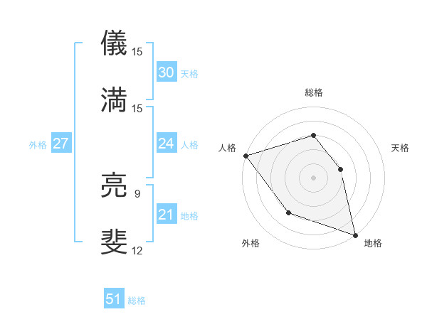儀満 亮斐さんの総格は51画の3点!