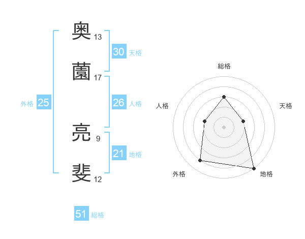 奥薗 亮斐さんを姓名の画数から五運を鑑定