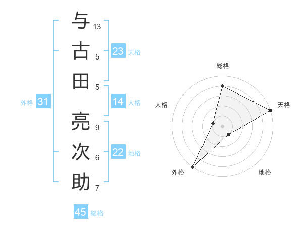 与古田 亮次助さんを姓名の画数から五運を鑑定
