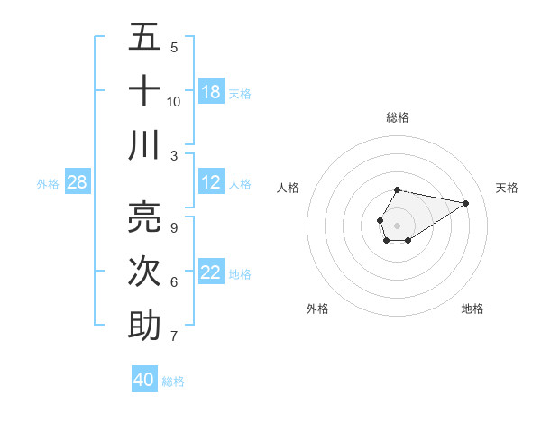 五十川 亮次助さんを姓名の画数から五運を鑑定