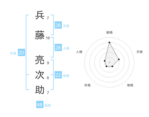 兵藤 亮次助さんを姓名の画数から五運を鑑定