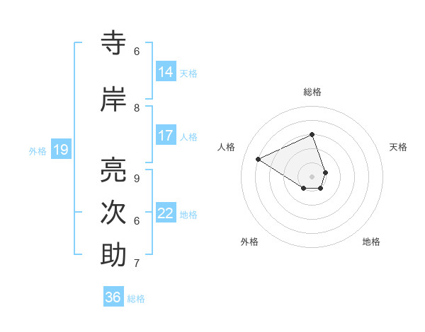 寺岸 亮次助さんの総格は36画の3点!